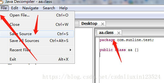 也是在jd-gui文件里面。点击要转的文件,然后file-->save Source,如下图: