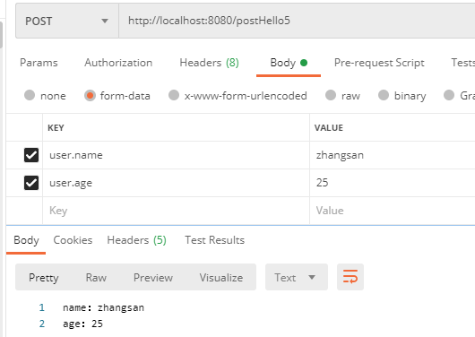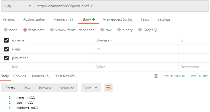 (4)如果传递的参数有前缀,且前缀与接收实体类的名称相同,那么参数也是可以正常传递的: