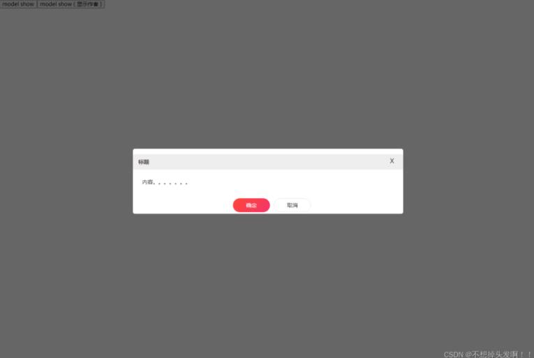 当弹窗要显示的时候,要先设置 modelShow 让组件显示,然后用 setTimeout 调度让 modelShowAync 触发执行动画。