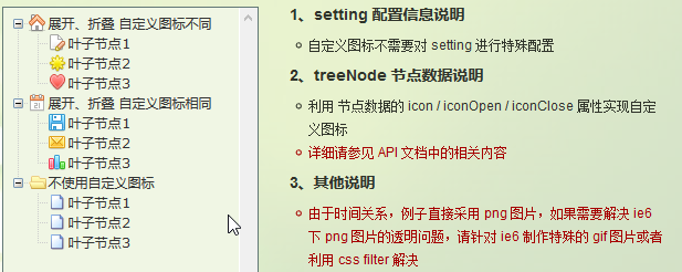 为treeNode节点数据设置icon/iconOpen/iconClose属性即可