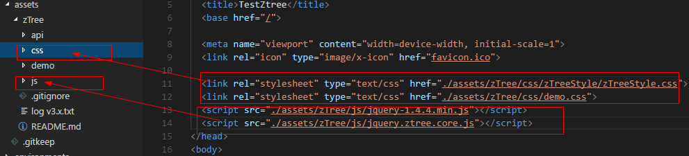 <!doctype html> <html lang="en"> <head> <meta charset="utf-8"> <title>TestZtree</title> <base href="/" rel="external nofollow" > <meta name="viewport" content="width=device-width, initial-scale=1"> <link rel="icon" type="image/x-icon" href="favicon.ico" rel="external nofollow" > <link rel="stylesheet" type="text/css" href="./assets/zTree/css/zTreeStyle/zTreeStyle.css" rel="external nofollow" > <link rel="stylesheet" type="text/css" href="./assets/zTree/css/demo.css" rel="external nofollow" > <script src="./assets/zTree/js/jquery-1.4.4.min.js"></script> <script src="./assets/zTree/js/jquery.ztree.core.js"></script> </head> <body> <app-root></app-root> </body> </html>