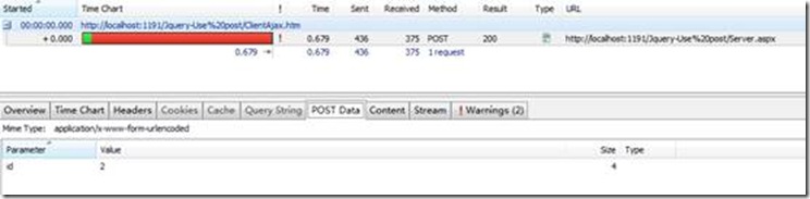 $.post('Server.aspx', { id: idValue }, function (text, status) { alert(text); });