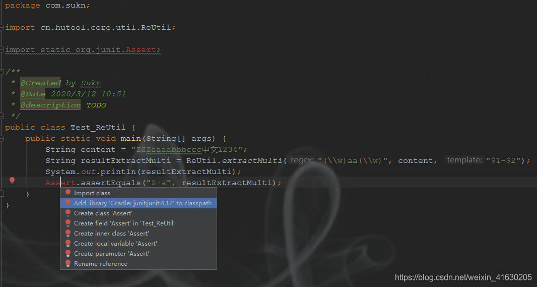 (有问题的地方Alt Enter)自动导入包cn.hutool.core.lang.Assert后,assertEquals报错