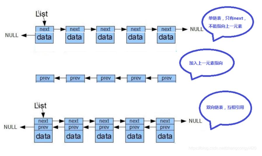 双向链表也叫双链表,是链表的一种,它的每个数据结点中都有两个指针,分别指向直接后继和直接前驱。所以,从双向链表中的任意一个结点开始,都可以很方便地访问它的前驱结点和后继结点