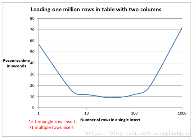 所以,如果非要使用 foreach 的方式来进行批量插入的话,可以考虑减少一条 insert 语句中 values 的个数,最好能达到上面曲线的最底部的值,使速度最快。一般按经验来说,一次性插20~50行数量是比较合适的,时间消耗也能接受。
