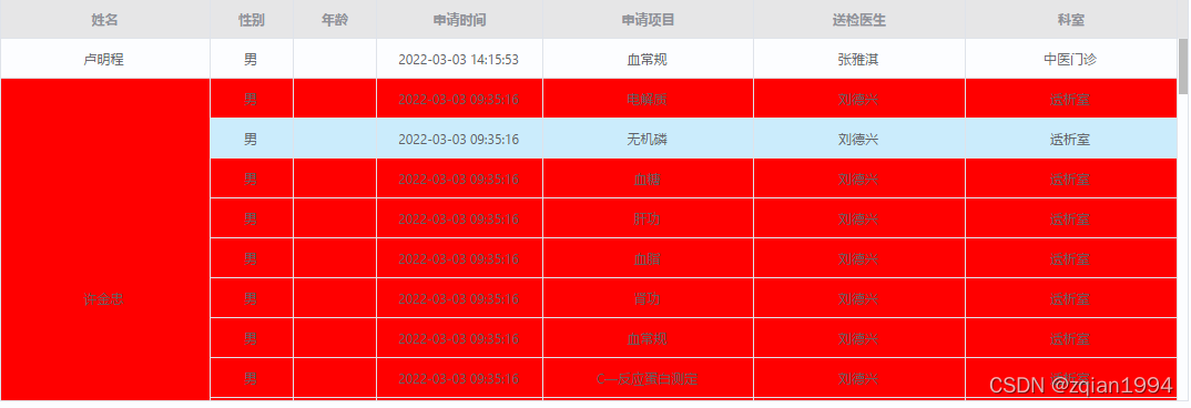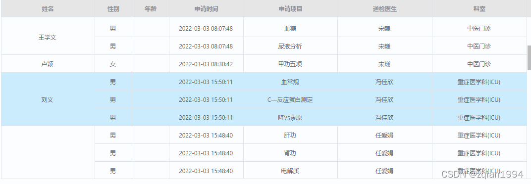 // itemId为JSON内层nurseOptPatVoList内唯一主键,用于设置被合并列单元格底色