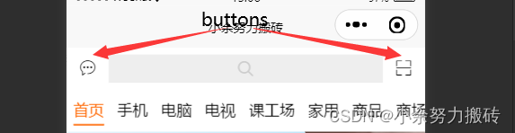 }我们并不需要所有的内容,本次我将介绍的是,"buttons","searchInput"的组合使用,这里的buttons其实是我的导航栏左右的两个图片,可以配合图标实现想要的功能,searchInput就是中间的搜索框