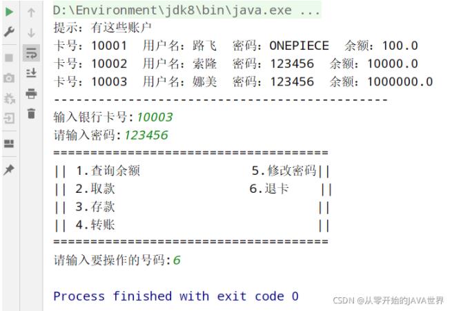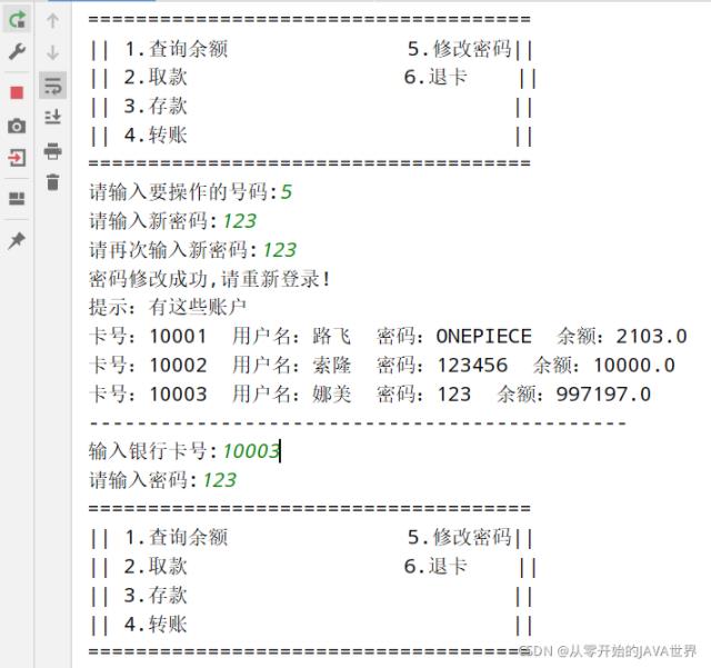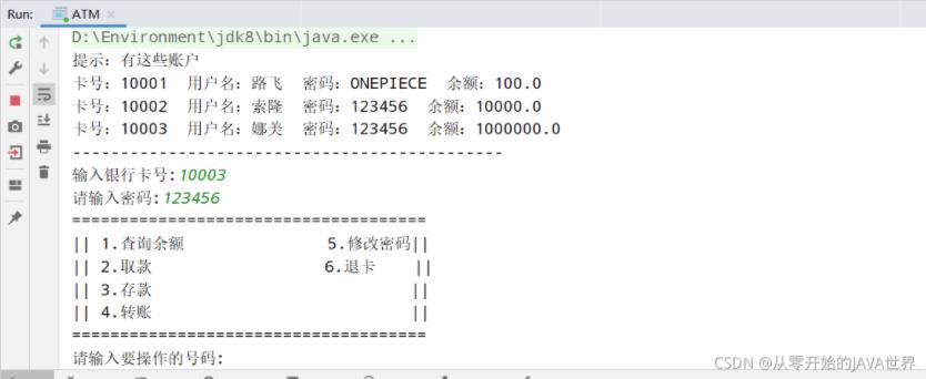 想模拟提款机插卡登录的,因此没做注册账号的功能,手动先塞了三个账号。
