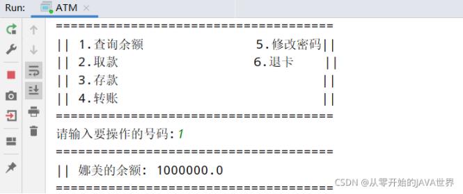 System.out.println("|| 1.查询余额 5.修改密码||");