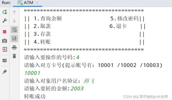 System.out.println("转账成功");