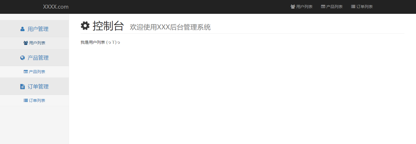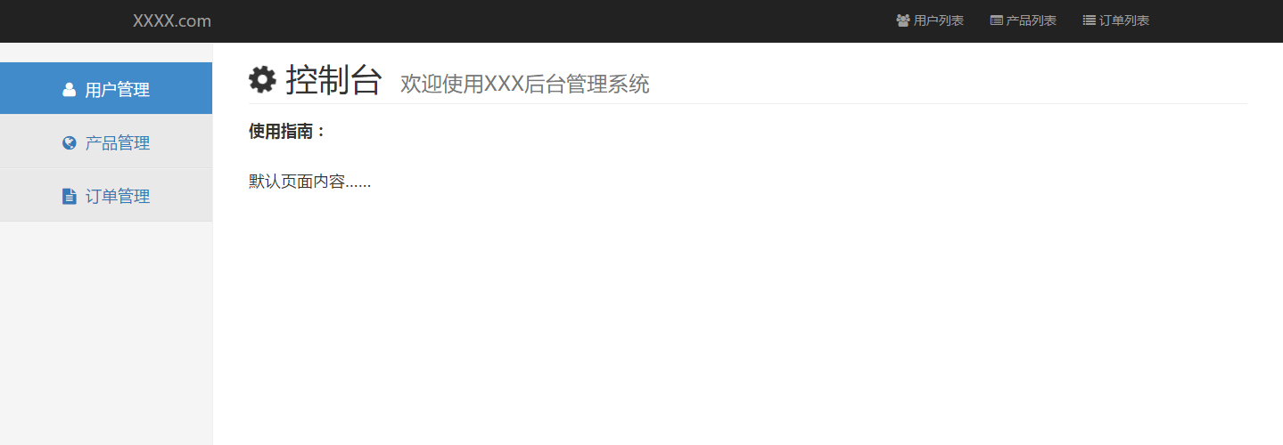 <h1 class="page-header"><i class="fa fa-cog fa-spin"></i> 控制台<small>   欢迎使用XXX后台管理系统</small></h1>