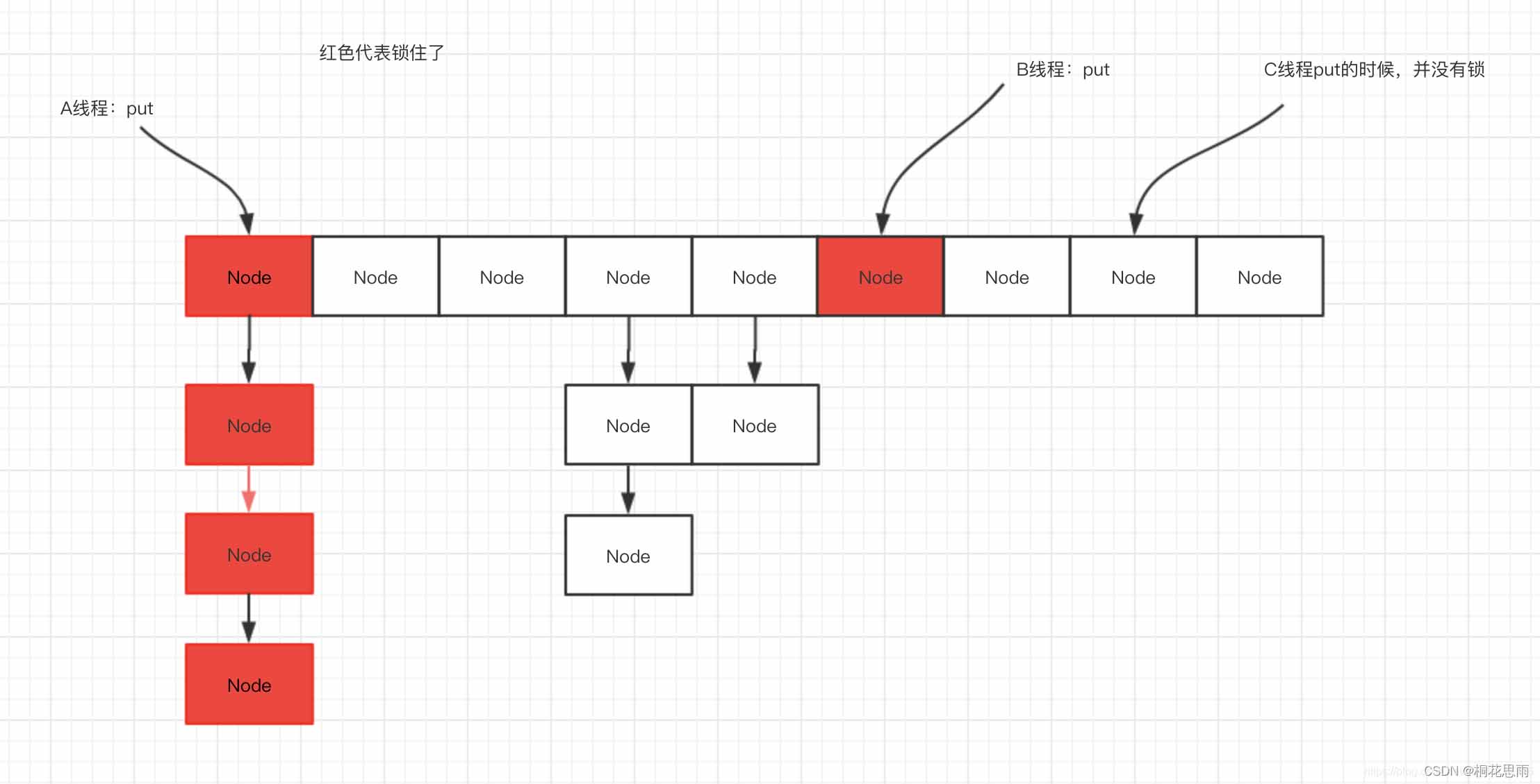就算有多个线程同时进行 put 操作,在初始化 Node[] 数组时,使用了 CAS 操作来决定到底是哪个线程有资格进行初始化,其他线程只能等待。
