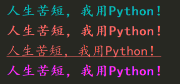 print(printColors.CYAN "人生苦短,我用Python!" printColors.END)
