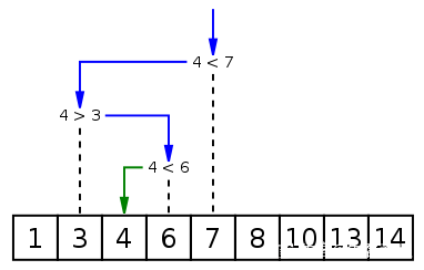 二分搜索是一种在有序数组中查找某一特定元素的搜索算法。搜索过程从数组的中间元素开始,如果中间元素正好是要查找的元素,则搜索过程结束;如果某一特定元素大于或者小于中间元素,则在数组大于或小于中间元素的那一半中查找,而且跟开始一样从中间元素开始比较。如果在某一步骤数组为空,则代表找不到。这种搜索算法每一次比较都使搜索范围缩小一半。