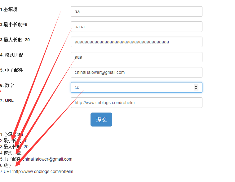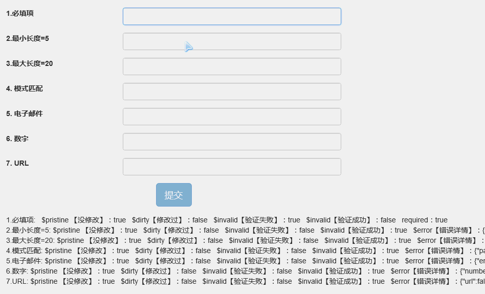 下面我们将这些表单验证放到具体的实现中来测试一下: