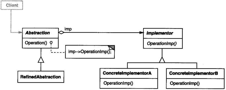 1). 你不希望在抽象和他的实现部分之间有一个固定的邦定关系,如在程序的运行时刻实现部分应该可以被选择或者切换。