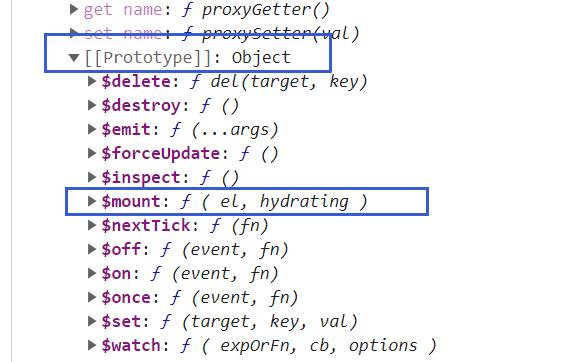 x.$mount('#root')其中 $mount可以在打印的 vue 实例中找到