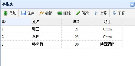 3、保存时使用getRows()或者getChanges(). getChanges()主要是获取添加或编辑的数据,getRows()获取到本页所有数据,主要是配合【上移】【下移】方法使用。