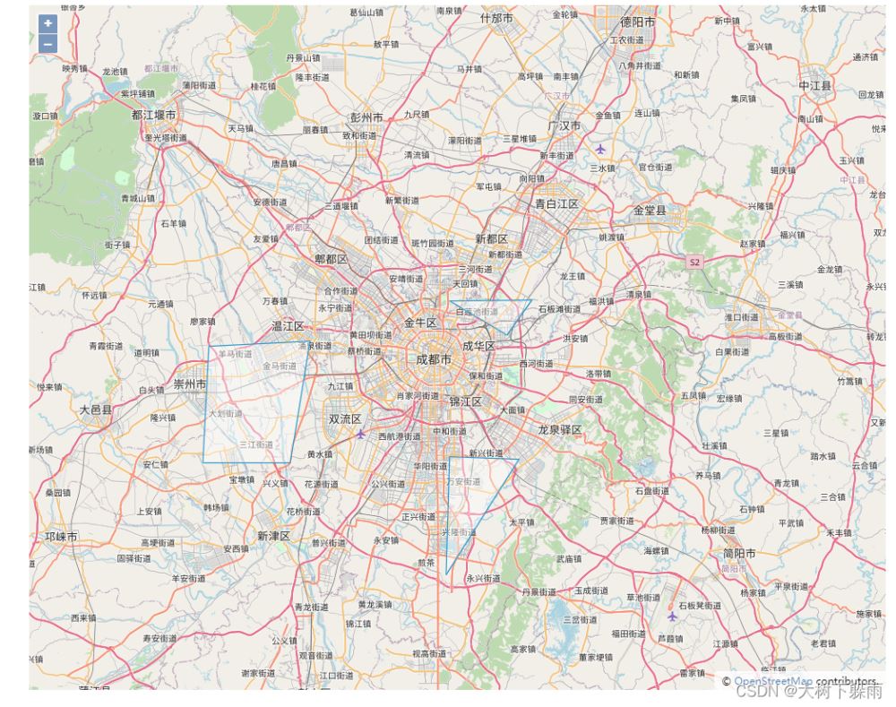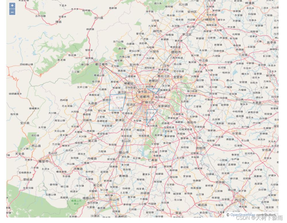 {"type":"FeatureCollection","features":[{"type":"Feature","properties":{},"geometry":{"type":"Polygon","coordinates":[[[104.08859252929688,30.738294707383368],[104.18060302734375,30.691068801620155],[104.22042846679688,30.739475058679485],[104.08859252929688,30.738294707383368]]]}},{"type":"Feature","properties":{},"geometry":{"type":"Polygon","coordinates":[[[104.08859252929688,30.52323029223123],[104.08309936523438,30.359841397025537],[104.1998291015625,30.519681272749402],[104.08859252929688,30.52323029223123]]]}},{"type":"Feature","properties":{},"geometry":{"type":"Polygon","coordinates":[[[103.70269775390624,30.675715404167743],[103.69308471679688,30.51494904517773],[103.83316040039062,30.51494904517773],[103.86474609375,30.682801890953776],[103.70269775390624,30.675715404167743]]]}}]}