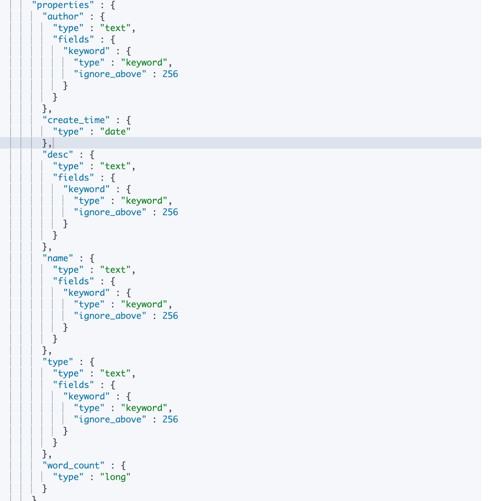 - 定义索引中字段的数据类型 , 如 text , long , keyword....