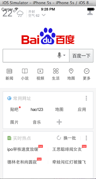 这是加载网页最常用的一种方式,通过一个网页URL来进行加载,这个URL可以是远程的也可以是本地的,例如我加载百度的主页: