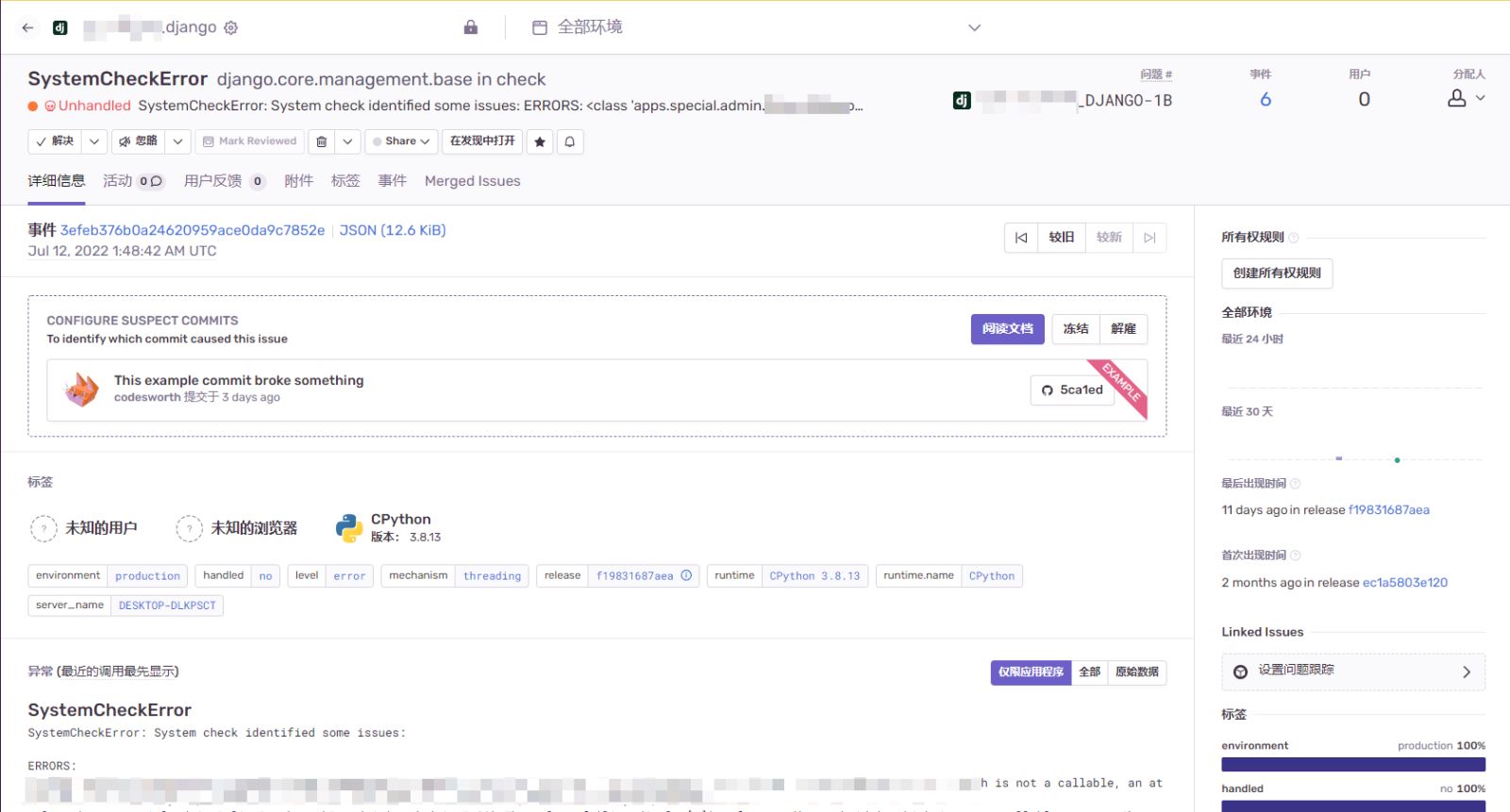 Sentry的界面比ExceptionLess的复杂很多,里面的信息也更多,让人看得眼花缭乱