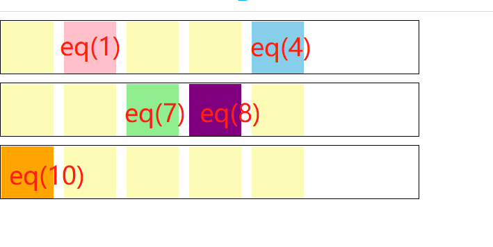 所以eq() 方法在 jQuery 对象中通过下标获取某个对象,下标是 jQuery 对象中的大的排序的下标。