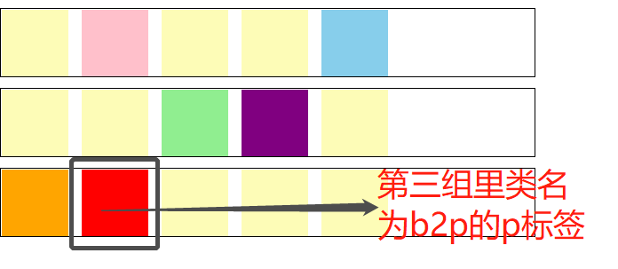 //得到第3组类名为b2p的 p 标签,让它变成红色