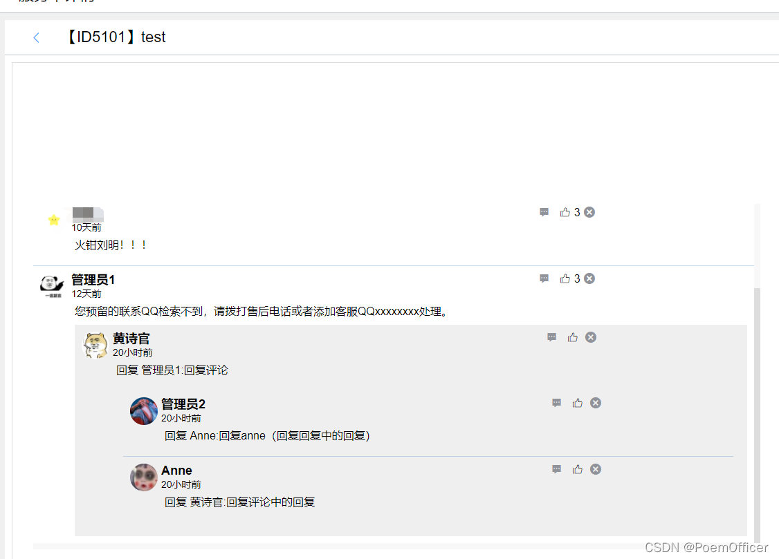 3、根据评论ID、回复类型等于2、回复ID去关系表获取第三层回复。第三层(评论下回复中的回复)注:回复ID是它的上级