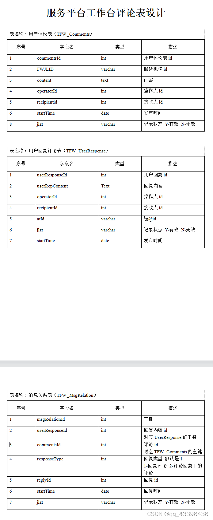 注:各位读者自动忽略评论表的服务机构ID字段,这个字段相当于这条评论是在哪个帖子(文章下面)