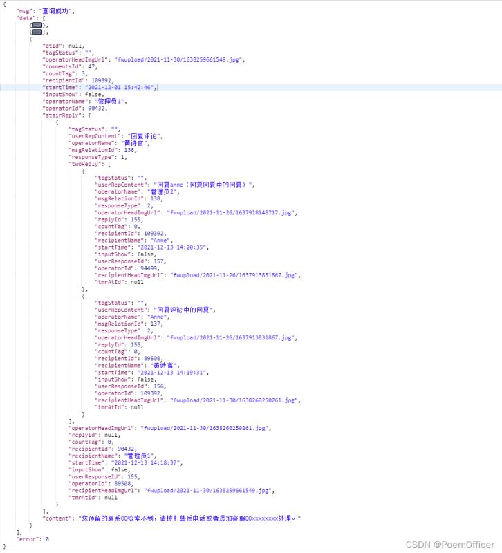 上图是根据评论ID(msgRelationId)和回复ID(userResponseId)去获取二级回复。回复ID也就是父类。就是回复那一条回复的ID。 第三层展示
