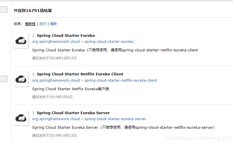 **错误原因:**查看官网及spring中央仓库发现,boot2.1.x对应的cloud版本已经不推荐使用上面的两个jar包,