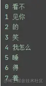list1 = ["看不", "见你", "的", "笑", "我怎么", "睡", "得", "着"] for i in range(len(list1)): print(i, list1[i])