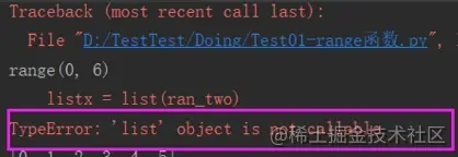 由于变量list和函数list重名了,所以函数在使用list函数时,发现list是一个定义好的列表,而列表是不能被调用的,因此抛出一个类型错误。所以,当我们以后在定义变量时,应该避免和函数名、方法名和关键词重复,任何语言均如此。