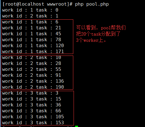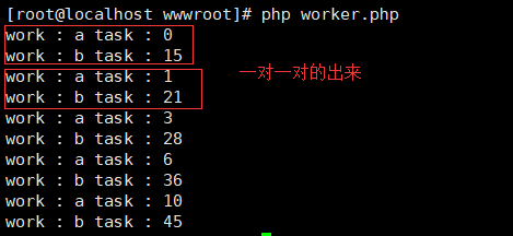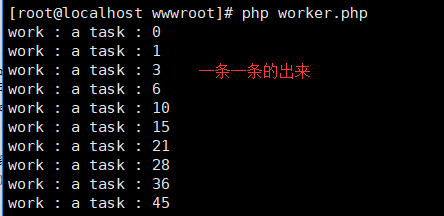 echo "work : {$this->worker->getName()} task : {$total} \n";