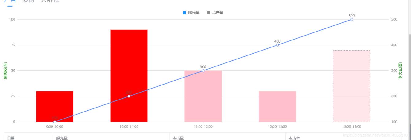 { time: '12:00-13:00', value: 30, type: '点击量', rate: 400 },