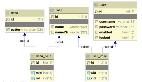 至此,一个简易的权限数据库就设计好了(在本书提供的案例中,有SQL脚本)。