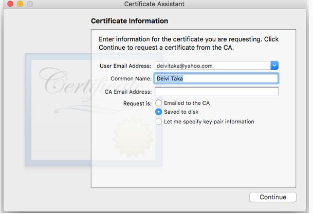 填写表单并单击Continue。确保你选择保存到了磁盘。