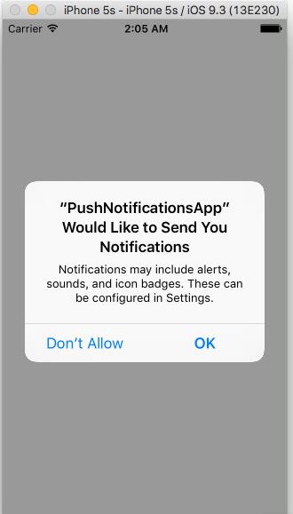 此时,应用程序将自动弹出一个Alert,询问用户是否要收到该通知。