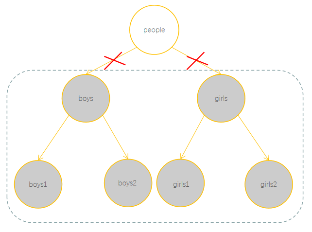 其中,people节点由于是全局变量,所以天然可达。boys和girls节点由于被全局变量直接引用,构成间接可达。boys1、boys2、girls1和girls2由于被全局变量间接应用,可以通过people.boys.boys访问,因此也属于可达变量。