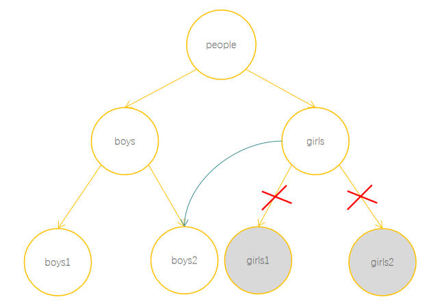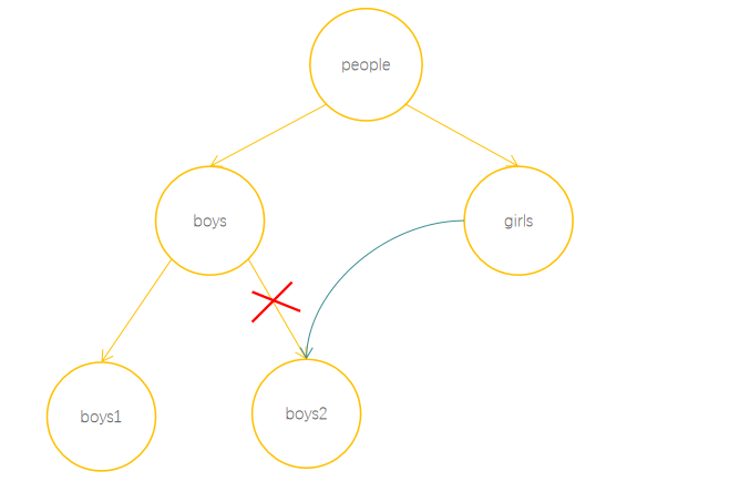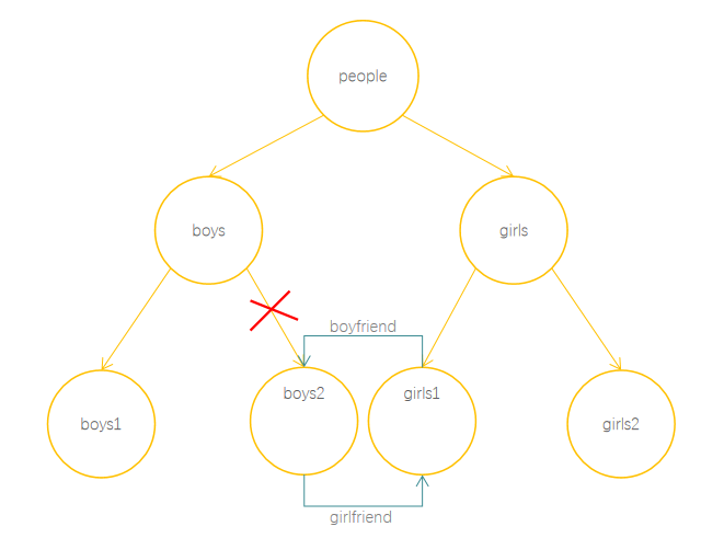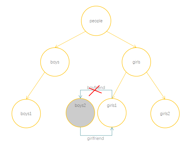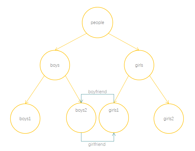 people.girls.girls1.boyfriend = people.boys.boys2; //girls1引用boys2以上代码在boys2和girls1之间创建了一个相互关联的关系,关系结构图如下: