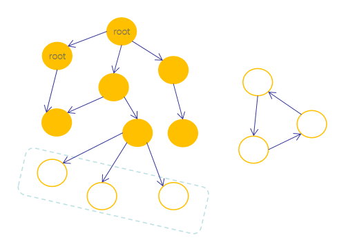 换一个说法,如果一个值能够通过根访问到(例如,A.b.c.d.e),那么这个值就是可达的。