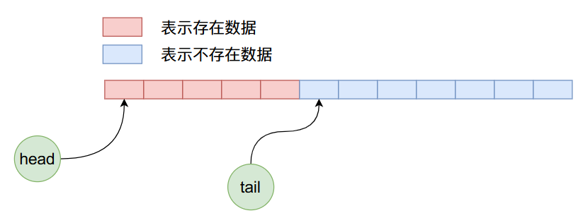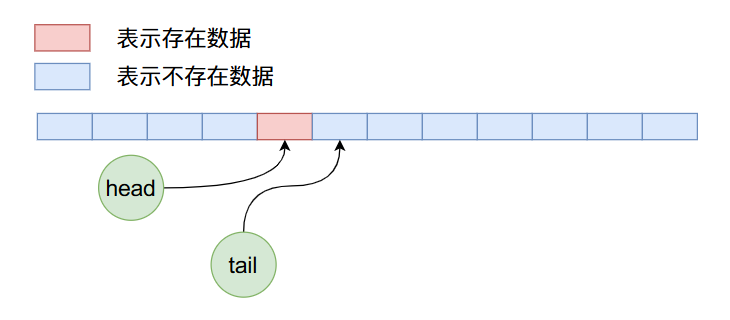 首先ArrayQueue内部是由循环数组实现的,可能保证增加和删除数据的时间复杂度都是 O ( 1 ) O(1) O(1),不像ArrayList删除数据的时间复杂度为 O ( n ) O(n) O(n)。在ArrayQueue内部有两个整型数据head和tail,这两个的作用主要是指向队列的头部和尾部,它的初始状态在内存当中的布局如下图所示: