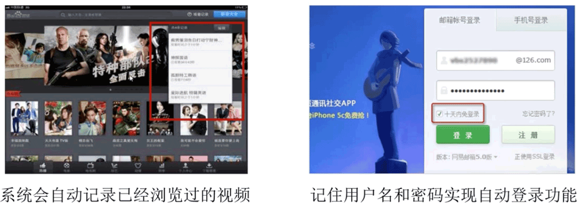 Cookie:中文名称为“小甜饼”,是Web服务器保存在客户端的一系列文本信息。