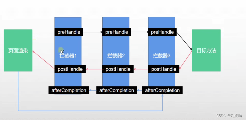 preHandle; - 若为 false,直接倒叙执行所有已经执行了的拦截器的