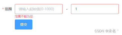 最近碰到一个需求,就是一个有一项数据取一个范围,并做验证,但是UI的验证提醒文字是合并在一起的,并不是每个输入框有单独的验证提醒,本文以elementUI为例,按需求进行了一些改动。