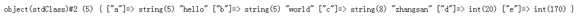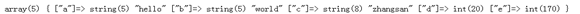 $json = '{"a":"hello","b":"world","c":"zhangsan","d":20,"e":170}';