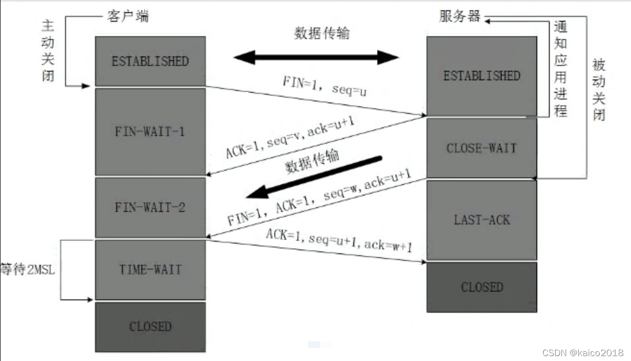 服务器只要收到了客户端发出的确认,立即进入CLOSED状态。同样,撤销TCB后,就结束了这次的TCP连接。可以看到,服务器结束TCP连接的时间要比客户端早一些。