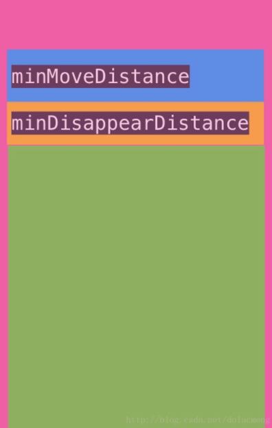 3、拖动大于minDisappearDistance,向下移动隐藏view
