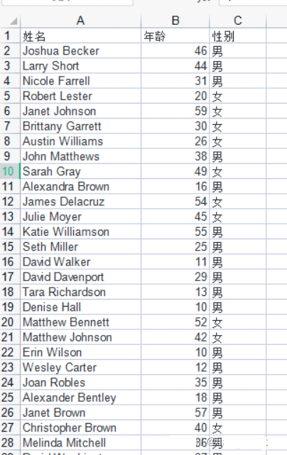 #利用for 循环 挨个写入 数据 行,列,数据值 这里列使用下标即可